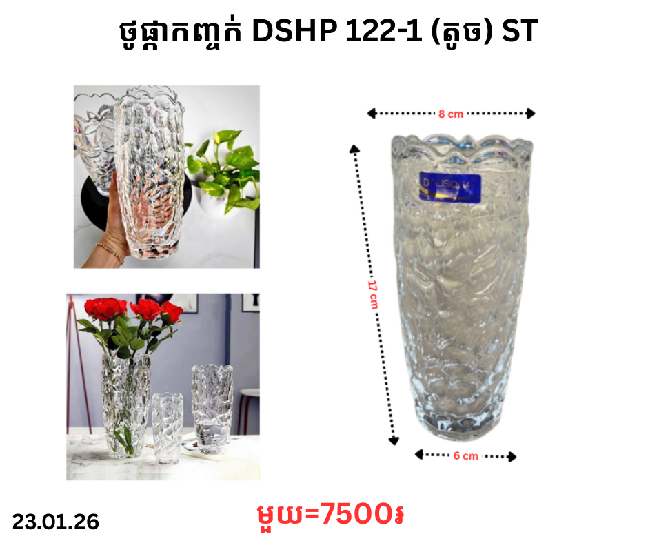 ថូផ្កាកញ្ចក់ DSHP 122-1 (តូច) ST January 22, 2026 Posted in 7500, CN, ST, ថូ, ថូផ្កា, ថូផ្កាកញ្ចក់, ថូផ្កាកញ្ចក់ CN, ទំនិញថ្មី Barcode : 86432