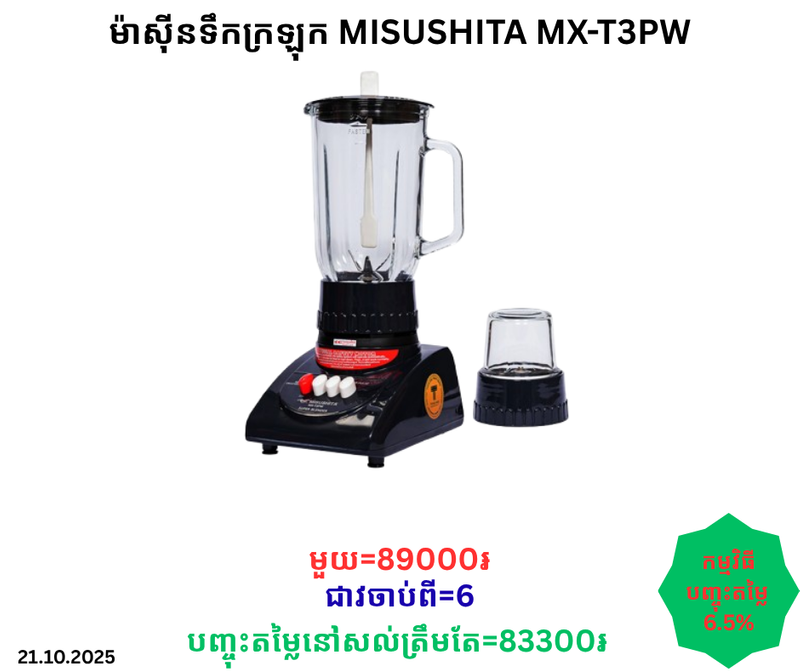 ម៉ាស៊ីនទឹកក្រឡុក Misushita MX-T3PW
